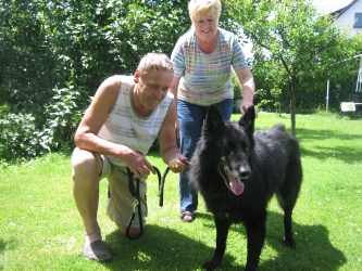 saß sehr lange in einer spanischen Perrera, da in Spanien niemand einem 9-jährigen großen Hund eine Chance gibt. Nachdem wir ihn in Dillenburg aufgenommen haben, hat der liebenswerte Groenendael (Mix?) schon nach vier Wochen ein tolles Zuhause bei etwas älteren Schäferhundfans gefunden. Seine neuen Besitzer mussten vor kurzem ihren Schäferhund einschläfern lassen und der stattliche Rüde hat sofort ihr Herz erobert. Beltza wohnt nun einem Haus mit tollem großen Garten, hat sofort den Teich als Pool entdeckt und ist in wilden Sprüngen durch sein neues Reich gerannt. Sein Herrchen ist Frührentner, hat den ganzen Tag Zeit für den Hund und Beltza hätte es nicht besser treffen können. Für ihn fängt jetzt endlich ein besseres Leben an.