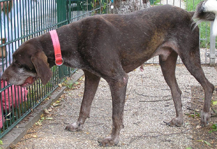 wurde ausgesetzt, grade mal 1 Jahr alt. Er lag total erschöpft auf einer Landstraße, abgemagert, kaum noch fähig zu laufen. Seine Hüfte ist stark geschädigt, wohl der Grund der "Entsorgung". Trotzdem ist er ein superlieber Hund geblieben und hat ein wunderschönes Zuhause bei einer hundeerfahrenen sehr netten alleinstehenden Dame gefunden. Er vergöttert sein Frauchen, benimmt sich tadellos und ist einfach ein Schatz. Er lebt in einer Wohnung mitten im Grünen und muss fast nie alleine sein. Wahrscheinlich hat er tatsächlich Glück gehabt, dass seine lieblosen Vorbesitzer ihn entsorgt hatten. So kann er jetzt ein schönes Leben führen, wo man auch mit seiner HD keine Probleme hat. Leider musste Big aus gesundheitlichen Gründen im Januar 2011 wieder abgegeben werden. |