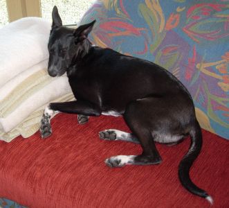 auch die zarte Podenco-Mischlingshündin Nike hat uns wieder verlassen und das Tierheim gegen ein schönes neues Zuhause getauscht. Sie lebt nun bei einem hundeerfahrenen sehr netten Paar mit 8-jähriger Tochter in einem Haus mit Garten in einer herrlichen Gegend. Sie hat sich in ihrem neuen Heim sofort wohl gefühlt und direkt das Sofa in Beschlag genommen. Nike wird die Hundeschule besuchen und sicherlich eine eifrige Schülerin sein. |