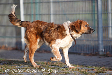 wartete schon ein Jahr im Tierheim. Da er ein sehr verstörter Hund ist, der vermutlich vorher nie viel Kontakt zu Menschen hatte, war seine Vermittlung sehr schwer. Er lebte anfangs im Tierheimbüro zusammen mit einigen anderen Hunden. Später gewöhnte ihn die Tierheimleiterin an ihre Dienstwohnung. Nun hat sie sich entschieden, Matteo endgültig zu behalten. Er versteht sich zwar gut mit allen Tierheimmitarbeitern, aber wirklich Vertrauen hat er nur zu ihr. Zusammen mit ihren Hunden genießt er lange Spaziergänge ohne Leine, hört prima und ist bei ihr ein absolut unkomplizierter glücklicher Hund. Matteo muss sich nun nie mehr von ihr trennen, was ein neues Trauma für ihn auslösen würde. Und mit Rosi, einer ebenfalls verstörten Hündin, die auch das Glück hatte, von Frau Grimm übernommen zu werden, versteht er sich prima. Die beiden sind ein Topteam. Wir freuen uns für Dich, Matteo!