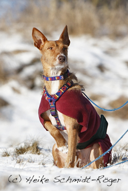 die ältere kleine Podenco-Mixhündin hat ein tolles Zuhause gefunden. Sie lebt als absoluter Mittelpunkt bei einem hundeerfahrenen Ehepaar, wird geliebt und verwöhnt und wie eine kleine Prinzessin behandelt. Sie genießt ihr neues Leben in vollen Zügen, geht lange spazieren, buddelt nach Mäusen, fährt im Urlaub regelmäßig an die Nordsee und kann die Episode "Tierheim" nun endgültig vergessen. Dafür himmelt sie ihre neuen Besitzer an und dankt es ihnen täglich auf ihre Weise. |
