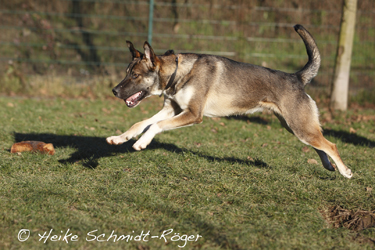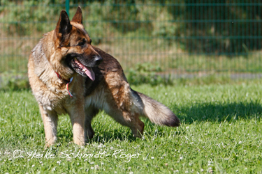 der junge Schäferhund-Mischlingsrüde war bei uns im Tierheim restlos unterfordert und ein sehr anstrengender Hund. Aber er hat genau das richtige Zuhause gefunden. Er lebt nun bei einem hundeerfahrenen Nebenerwerbslandwirt und seiner Familie. Dort ist er tagsüber auf dem großen Hof, kann sich frei bewegen und den Abend dann im Kreis der Familie relaxen. Sein neues Herrchen ist total begeistert von dem cleveren Rüden, der bereits auf Wort hört und der seinen neuen Chef nicht mehr aus den Augen verliert. Aus der "Granate" Jimmy ist ein glücklicher, ausgeglichener und fröhlicher Hund geworden, der sich auch wunderbar mit den Enkelkindern versteht. |