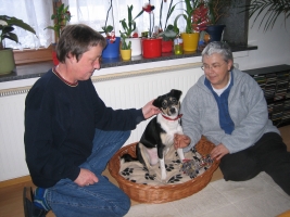 : Janny lebt nun bei einem hundeerfahrenen Paar. Der ausgesetzte und fast blinde kleine Rüde war im Tierheim sehr unglücklich, doch als seine neuen Besitzer kamen, war er sofort von ihnen überzeugt, lies sich auch problemlos anfassen. Von seiner neuen Lebenspartnerin, einer 10 Monate alte Pinscherhündin namens Gisela war er sehr begeistert. Sein neues Frauchen hat zur Zeit Semesterferien, so dass er sich gut einleben kann und auch sie wenn ab Oktober wieder studiert, müssen er und Gisela nicht allzu lange alleine sein. Wahrscheinlich war es das beste für Janny, im Tierheim zu landen, da er jetzt das ideale Zuhause gefunden hat.