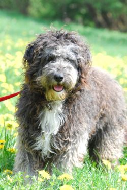 Peluso der junge Riesenschnauzer-Mischling hat es prima getroffen. Er ist bei einer netten "Drei-Generationen-Familie" eingezogen, lebt dort nun außerdem mit einem weiteren Hund, einer Katze und Pferden. In seiner großen neuen Familie ist immer jemand zu Hause und er kann nun sein Leben in einem großen Haus mit Grundstück mitten im Grünen so richtig genießen. Bei seinen neuen Leute war es Liebe auf den ersten Blick und der umgängliche und lebhafte junge Rüde passt super zu dieser Familie. |